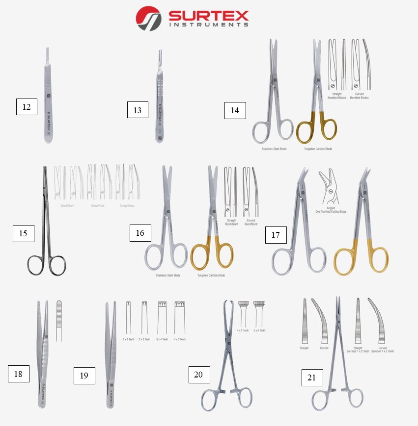 Bộ dụng cụ phẫu thuật cao cấp dùng cho phẫu thuật thương hiệu Surtex được nhập khẩu chính hãng từ Anh. Sản phẩm được làm từ chất liệu thép không gỉ cao cấp tiêu chuẩn Châu Âu, đảm bảo an toàn cho mọi ca phẫu thuật. Dụng cụ có thể được khử trùng và tái sử dụng.